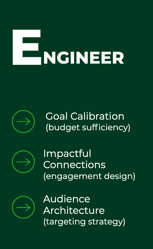 ENGINEER - We engineer impactful consumer connections considering motivations, moments, media, and messaging to create cohesive, compelling experiences. By delivering integrated creative + media brand experiences, we enable our clients to strengthen brand recall, loyalty, and advocacy among consumers.